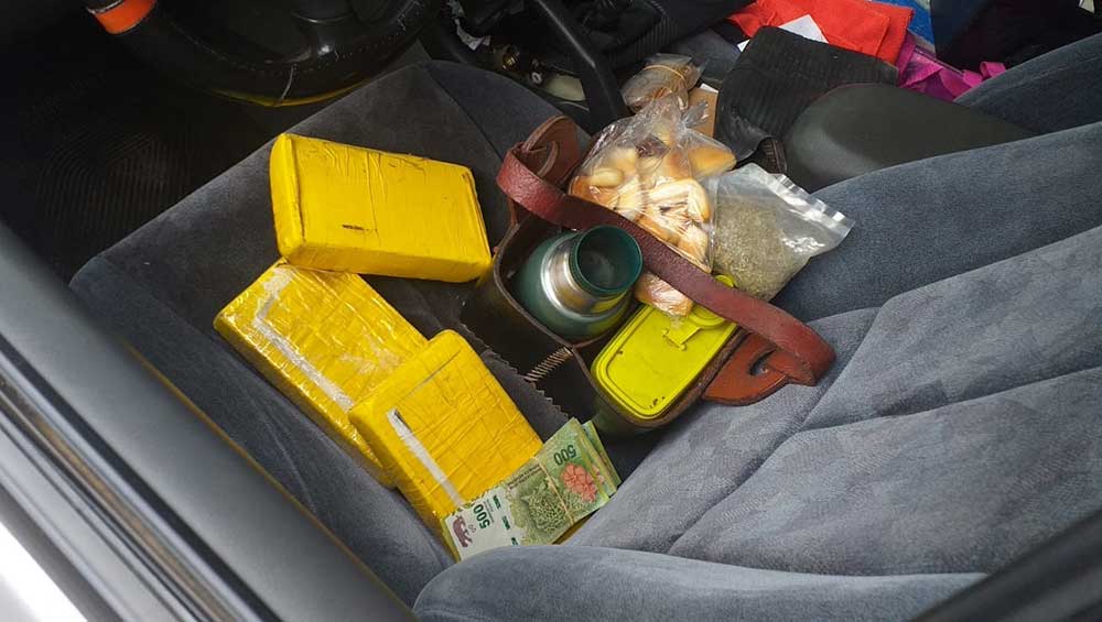 En un momento pudieron observar detrás del estéreo dos paquetes rectangulares envueltos en cinta Luego encontraron otros de las mismas características ocultos en un doble fondo debajo del apoya brazos.