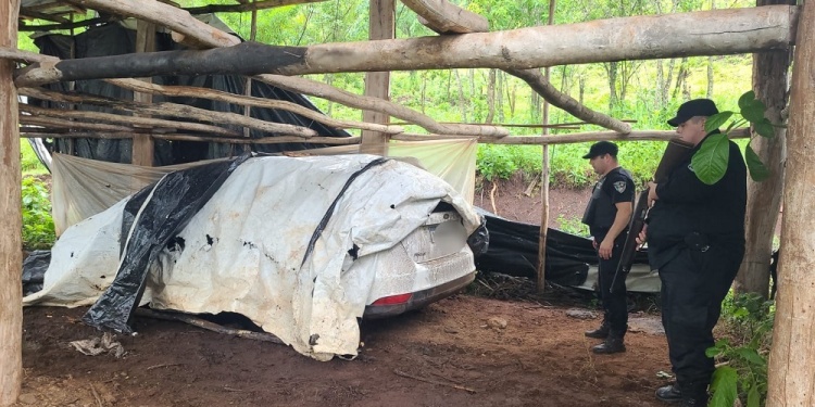 Los agentes del orden montaron un operativo cerrojo, el cual culminó en el paraje Guatambú de Mojón Grande. Allí, siguiendo las huellas del auto, llegaron hasta un galpón en donde el rodado estaba abandonado y tapado con unas lonas.
