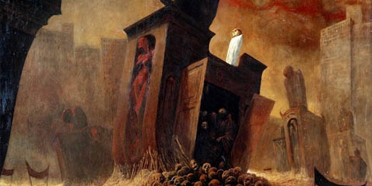 Entre las múltiples teorías de este arte tan perturbador, encontramos una historia no confirmada sobre la historia del artista. Se dice que en 1998 sufrió un accidente tras el que entró en coma durante un año. Una vez salió del hospital Beksínski comenzó a pintar lo que vivió durante su muerte: lo que había visto y oído en el infierno.