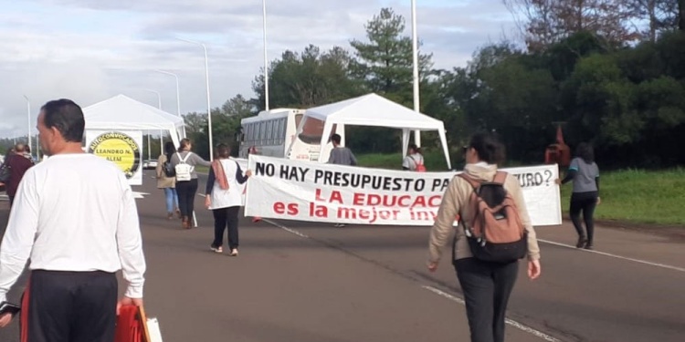 Sin embargo, el reclamo docente del grupo más crítico al Gobierno (el Frente Educativo) se trasladará a las rutas nacionales 12 y 14 mientras que el jueves se instalará en Iguazú. Se busca presionar al Gobierno provincial a ceder en la postura por ahora intransigente respecto a la oferta salarial para el primer semestre.