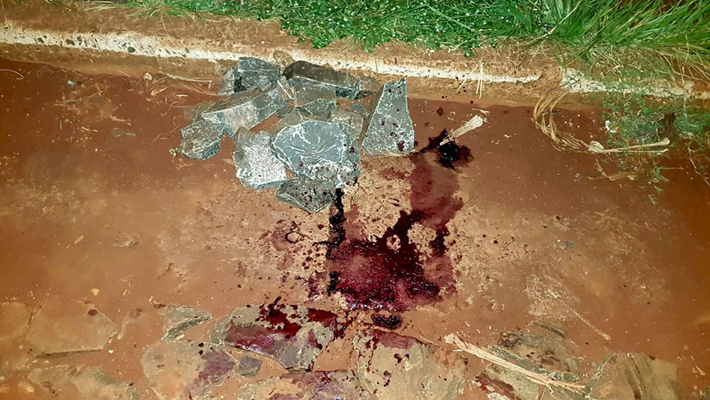 Cuando los policías llegaron al lugar se encontraron con un adolescente de 17 años y un hombre de 44 que resultó ser el padre, desvanecido y con urgente necesidad de atención médica. En el lugar había una profusa mancha de sangre junto a piedras de basalto tamaño considerable como las que se utilizan para los empedrados.