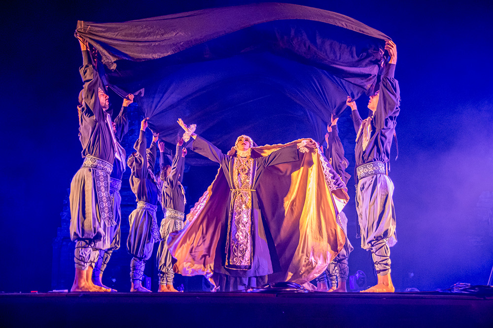 Por supuesto, todo el espectáculo estuvo enmarcado por el portal de la reducción, destacado por una planta de luces que le daba tintes diferentes a cada momento. Asimismo, dos pantallas laterales permitían al púbico acceder a primeros planos de los artistas.