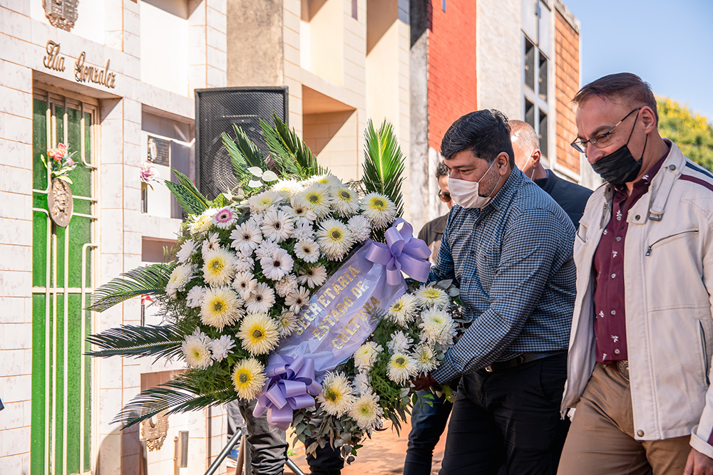 Más adelante, el gestor cultural y organizador del Encuentro de Escritores del MERCOSUR, brindó unas palabras y colocó a los pies de la tumba, la bandera de los 30 pueblos jesuítico guaraníes. En sintonía, el divulgador del idioma guaraní, Juan Ramón Fariña, dirigió unas estrofas en guaraní para el poeta misionero.