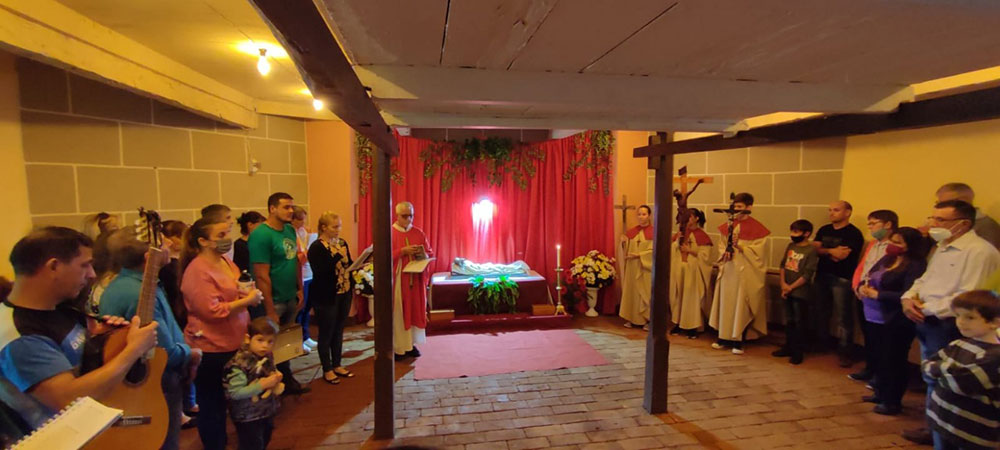 Hasta allí llegaron colectivos con visitantes desde Corrientes, por ejemplo. Unas 300 personas participaron de la tradicional celebración y adoración del Jesús Yacente. Llegaron para conocer este espacio histórico y sitio de fe que supo cobijar a tantos inmigrantes en tiempos difíciles cuando llegaron a Misiones.