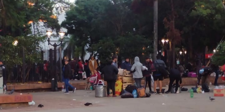 Desde las 6.30, permanecen en la plaza 9 de Julio al menos 250 personas de diferentes localidades que responden al Movimiento Teresa Rodríguez (MTR). Realizaron un acampe, pero se desconoce cuánto tiempo permanecerán en el lugar, solo que trasladaron sus reclamos a la capital provincial.