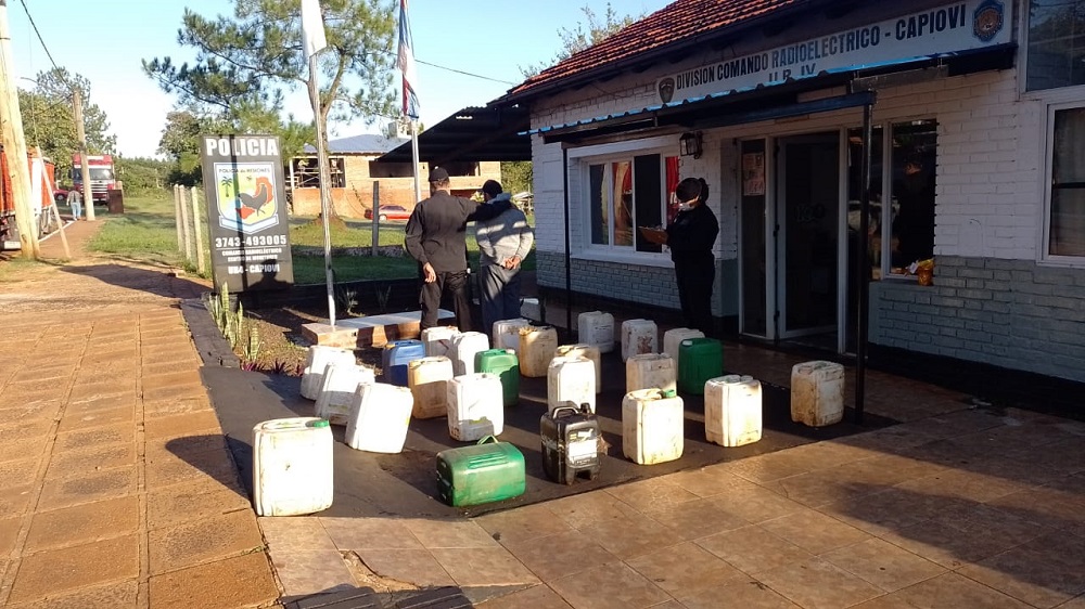 Por tal motivo, se procedió a demorar al chófer y trasladar la unidad junto con los 24 recipientes que contenían el material inflamable hasta la comisaría de Capioví.
