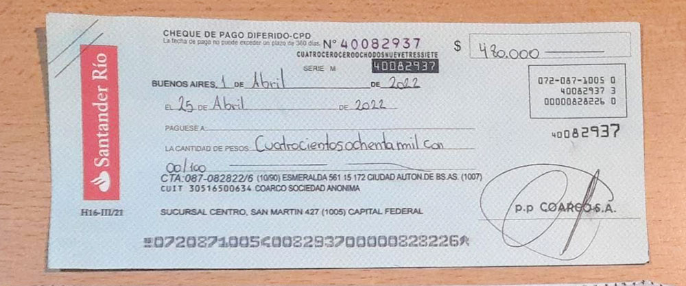 El primer caso salió a la luz cuando requirieron a un fletero que vaya a retirar las cubiertas y además de una orden de compra trucha de la empresa, le entregaron un cheque por 480 mil pesos para el pago. Todo resultó ser falso.