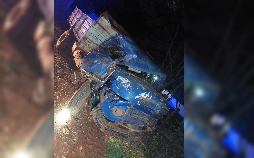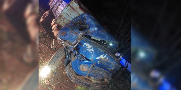 Anoche, por motivos que se tratan de establecer, un camión Mercedes Benz despistó y terminó en la banquina de la calle Sapucay en inmediaciones del arroyo Carrillo Viejo.