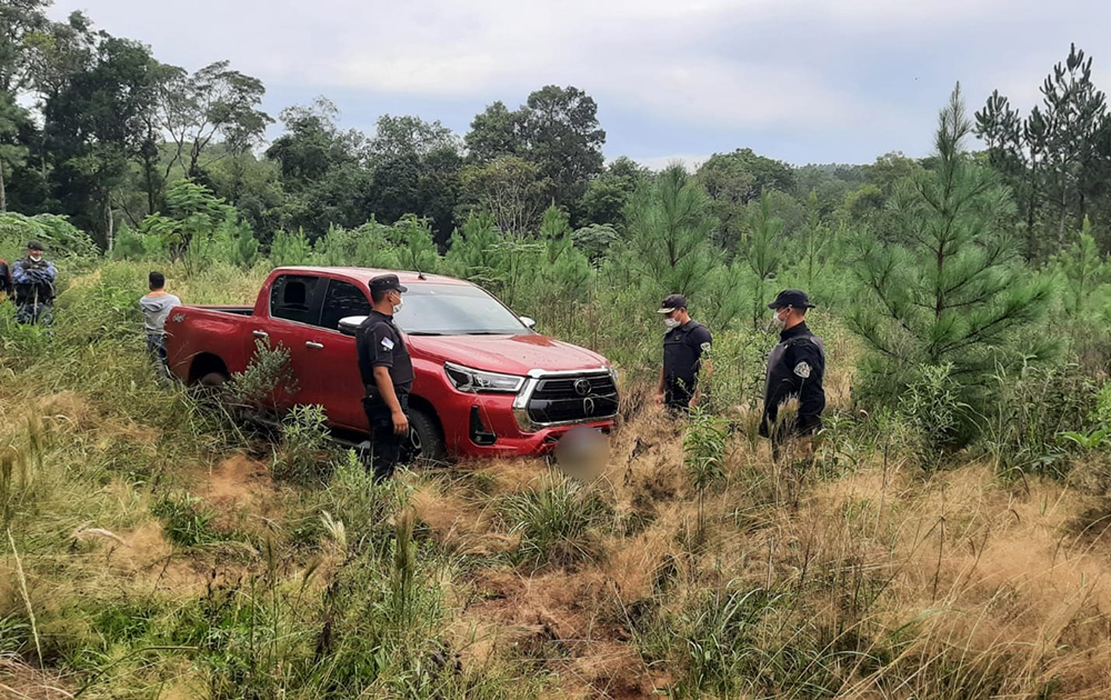 La camioneta fue encontrada a unos 10 kilómetros aproximadamente del domicilio de la denunciante, en cercanías de la localidad de Caá Yarí.
