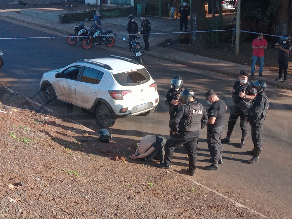 Efectivos de las Unidades Regionales I y X comenzaron un seguimiento y montaron un operativo cerrojo que comenzó a acorralar a quien conducía el Renault hasta que este llegó a la colectora norte de avenida Quaranta, entre Lavalle y Santa Catalina. Precisamente el sospechoso se vio en la obligación de detener la marcha en la esquina de la calle Trípoli.