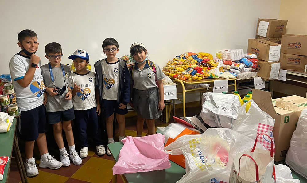 Durante toda la semana el entusiasmo de los chicos por participar de la actividad solidaria, denominada “Amor en Acción”, fue aumentando y poco a poco el Salón de Usos Múltiples fue llenándose de alimentos no perecederos, que forman parte de la inscripción y de las donaciones de particulares, empresas y de otras instituciones.