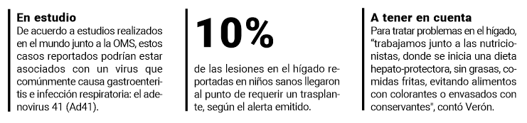 Con la última alerta de la OMS, señaló que “llama la atención que son casos reportados que aparecen en la edad pediátrica, donde muchos de estos pacientes presentan un daño agudo y muy marcado de la función hepática. Lamentablemente algunos de ellos terminan en un trasplante hepático, por el empeoramiento progresivo de su función”.