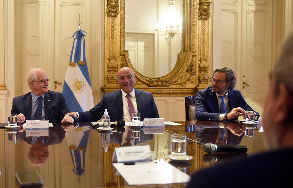 En el inicio, y a modo de demostrar que tienen el respaldo de Fernández, hablaron el ministro de Economía, Martín Guzmán; el de Desarrollo Productivo, Matías Kulfas; y el de Trabajo, Claudio Moroni.