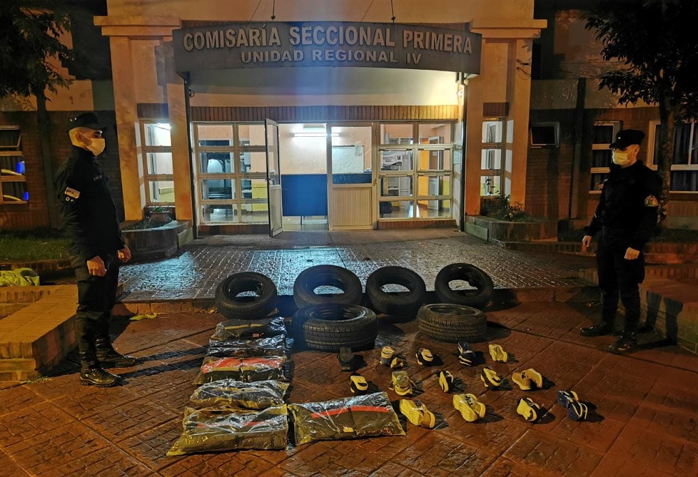 Tras tomar intervención el Juzgado Federal y la Delegación de Aduanas de Posadas, contabilizaron un total de 16 neumáticos de diferentes medidas, 6 camperas rompeviento y 12 pares de zapatillas. El aforo estimado fue de unos 400 mil pesos.