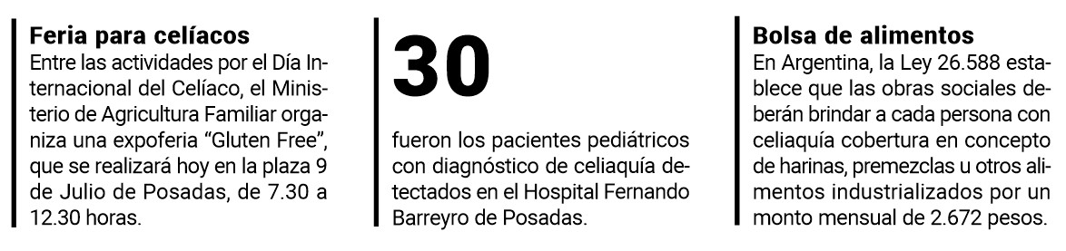 Cada 5 de mayo hay actividades de concientización para brindar información sobre la celiaquía, un trastorno que afecta a cerca del 1% de la población mundial. En Misiones, aumentan los diagnósticos de pacientes con esta afección crónica. Los síntomas son más fáciles de detectar en población pediátrica, pero la enfermedad puede despertarse en cualquier momento de la vida.