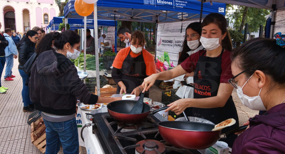 En una mañana fría, pero con mucha concurrencia en la plaza 9 de Julio de Posadas, emprendedores y productores de distintos puntos de Misiones ofrecen diferentes alimentos sin TACC. Muchos de los expositores incluso son celíacos y buscan concientizar acerca de la enfermedad.
