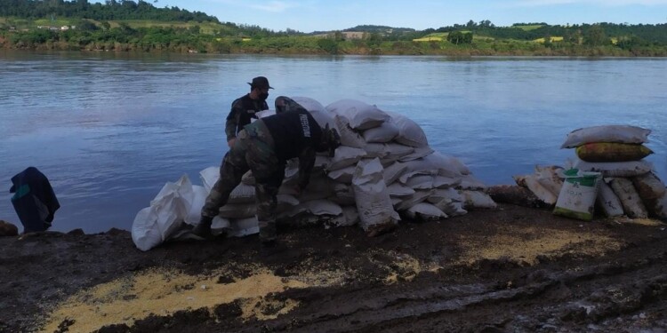 El primer operativo ocurrió a la altura del kilómetro 1.161,8 del río Uruguay, donde una patrulla de la fuerza nacional observó que se estaban manipulando bultos desde un camión hacia una lancha.