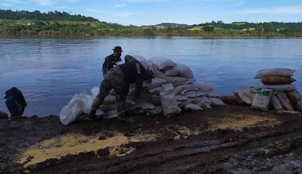 Asimismo, sobre el kilómetro 1.150,1 del mismo río, se aprehendió a otros dos individuos que descargaban bultos desde un camión y se consiguió secuestrar 121 bolsas de soja, con un peso total de 6.050 kilos.