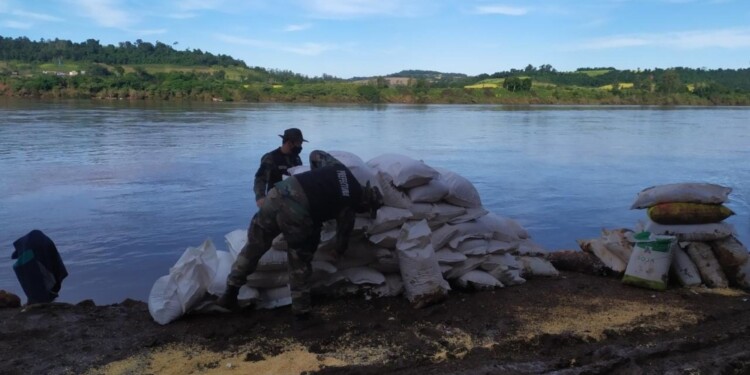 El otro operativo fue en el kilómetro 1.150 del mismo río, donde sí se aprehendió a otros dos individuos “que descargaban bultos desde un camión y se consiguió secuestrar 121 bolsas de soja, con un peso total de 6.050 kilos”.