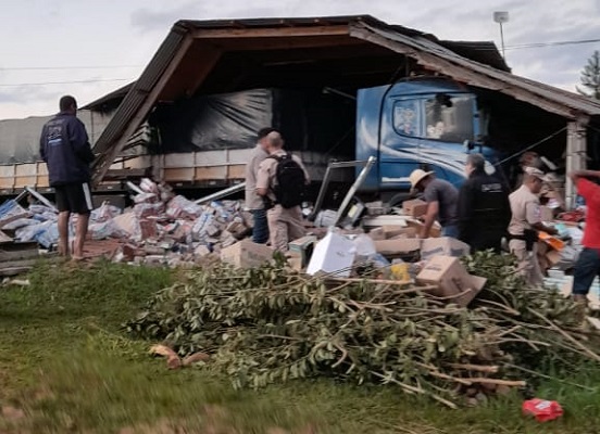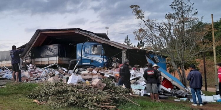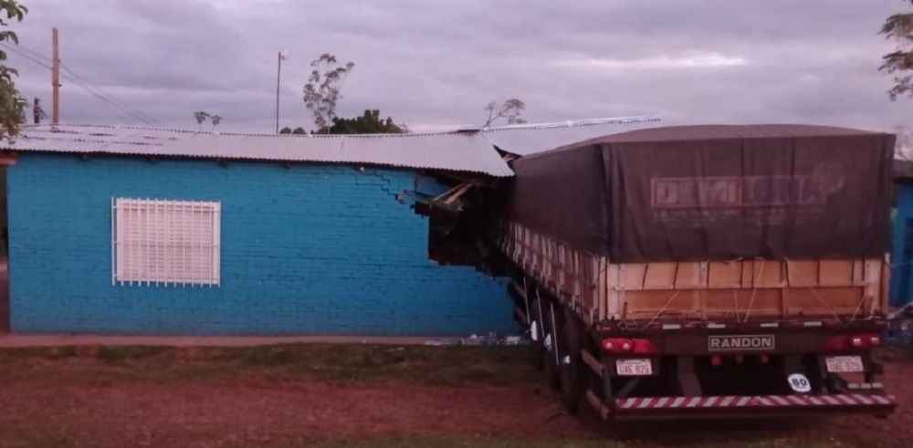Un camión cargado con maíz, procedente de Paraguay y que tenía como destino Brasil, a punto estuvo de causar una tragedia en San Javier, al arrasar un local comercial.