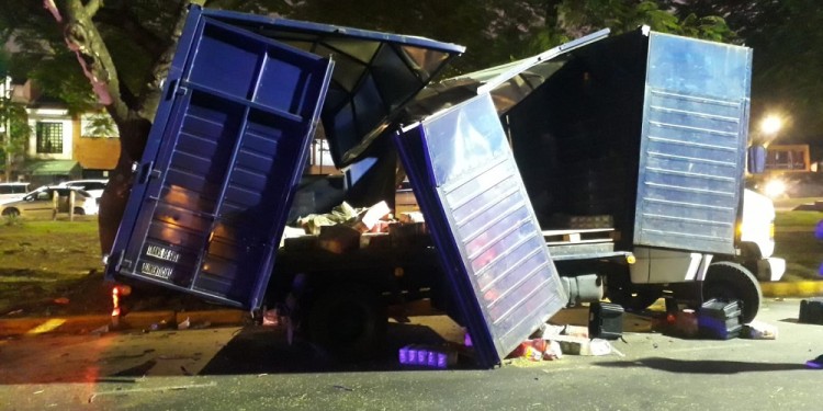 Eran alrededor de las 18:15 de este jueves cuando un violento choque protagonizado por un camión de reparto contra un árbol dejó importantes daños materiales aunque no hubo lesionados ni daños a terceros.