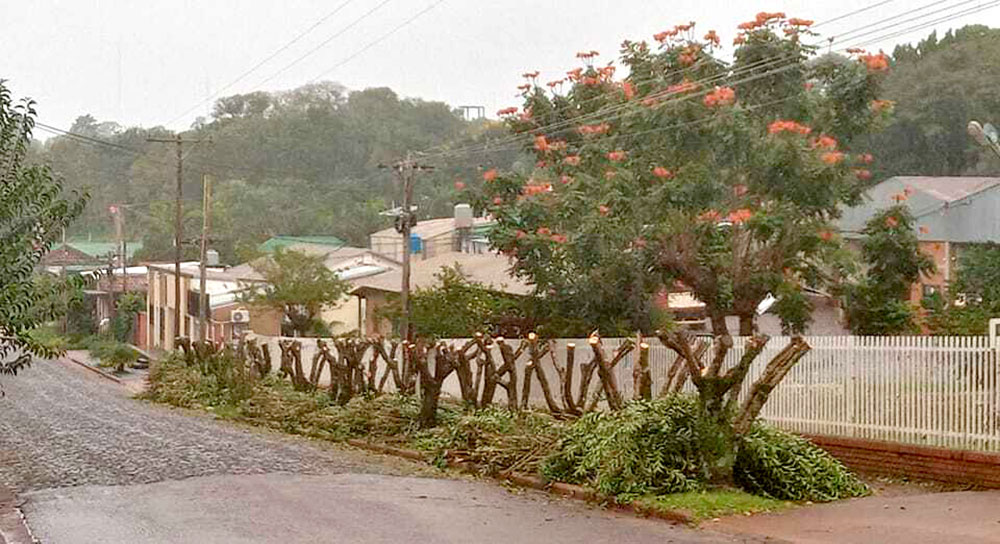 Con la triste imagen de unos quince árboles podados sin reparo, que se encontraban en un bulevar en el casco urbano de la localidad, el ambientalista, Raúl “Rulo” Bregagnolo contó que se “dio inicio a la masacre de árboles” en el municipio.