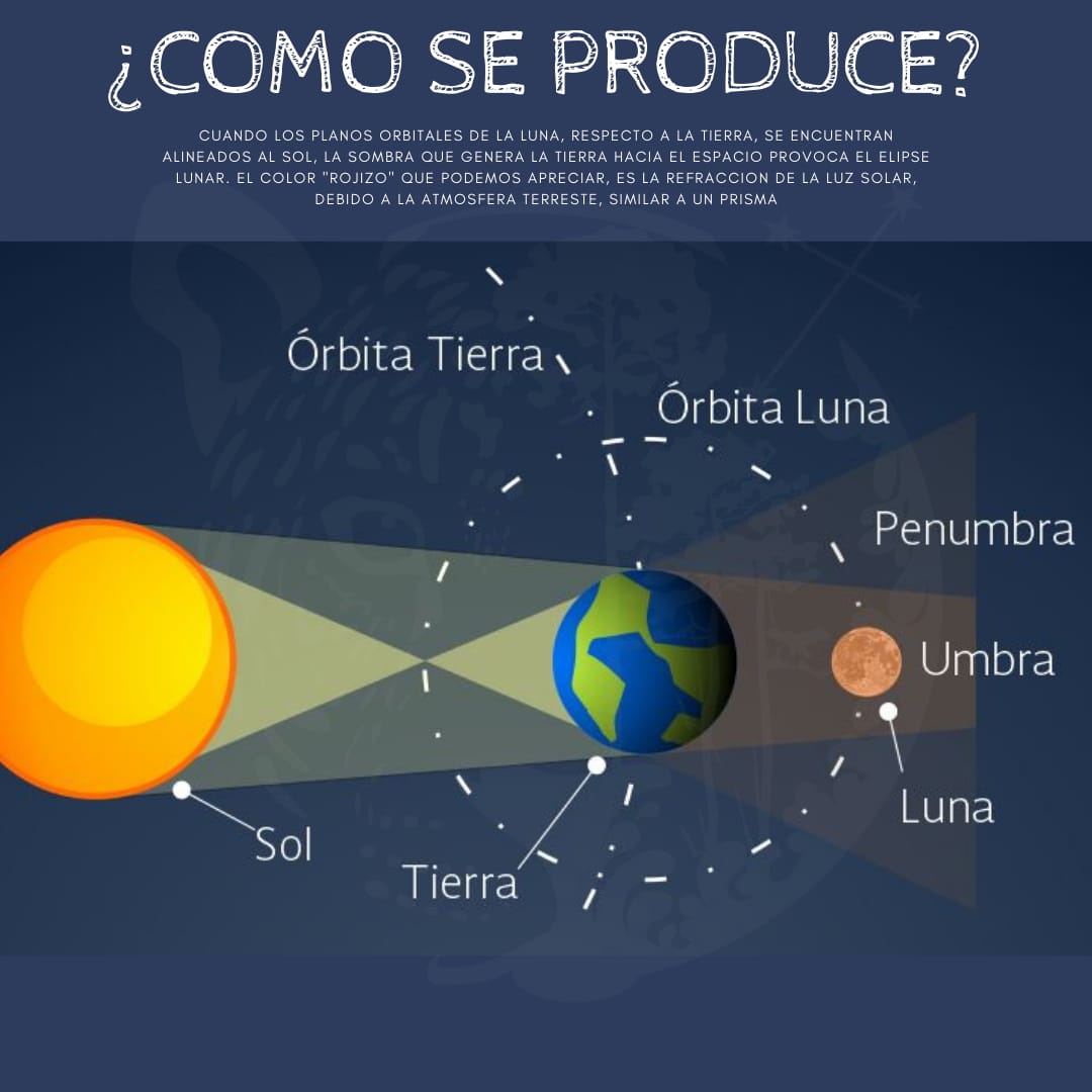 Cabe recordar que la Luna de Sangre se da cuando la Tierra bloque la radiación directa del Sol a la Luna, pero las partículas en suspensión que hay en la atmósfera refractan parte de la luz solar en el espectro del color rojo. Motivo por el cual, desde la Tierra se ve al satélite con ese tono.