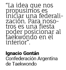 “La idea que nos propusimos es iniciar una federalización. Para nosotros es una fiesta poder posicionar al taekwondo en el interior, es un objetivo que nos planteamos a principios de año y, poder llevarlo a cabo, nos pone muy contentos”, indicó a este suple el presi de la Confederación Argentina de Taekwondo (CAT), Ignacio Gontán.