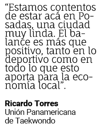 “Estamos contentos de estar acá en Posadas, una ciudad muy linda. El balance es más que positivo, tanto en lo deportivo como en todo lo que esto aporta para la economía local. Y acá están las promesas olímpicas, como los chicos que la semana pasada estuvieron en Rosario 2022. Es una fiesta inolvidable”, cerró a EL DEPOR el vice de la CAT y dirigente de la Unión Panamericana de Taekwondo, Ricardo Torres.