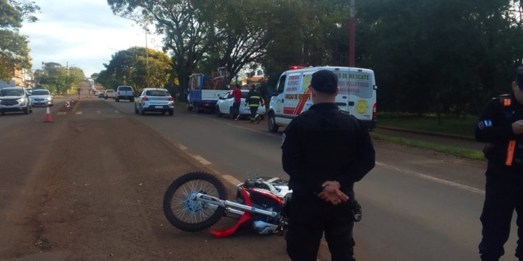 A raíz del siniestro, el motociclista terminó en el asfalto y fue trasladado al hospital local a bordo de una ambulancia de Bomberos Voluntarios de Jardín América donde evaluaban sus lesiones.