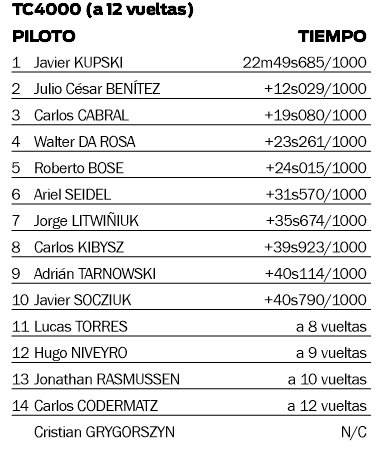 Alrededor de 4 mil personas le pusieron color y calor a un domingo de velocidad en el sur posadeño, donde Javier Kupski (TC4000), Julio Abente (Clase 1), Juan Pablo Pastori (Clase 3) y Guillermo Guidi (Copa Fiat 1.4) se quedaron con la victoria.