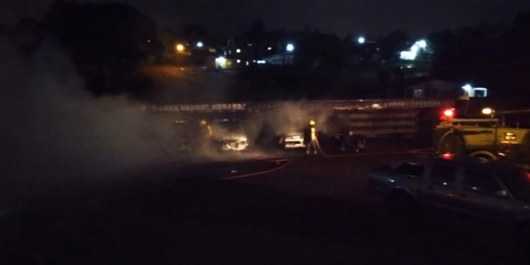 En la escena ya trabajan Bomberos Voluntarios de San Vicente y lograron sofocar el fuego. Como resultado, cuatro rodados fueron consumidos por completo por las llamas, mientras que uno se quemó parcialmente, se informó.