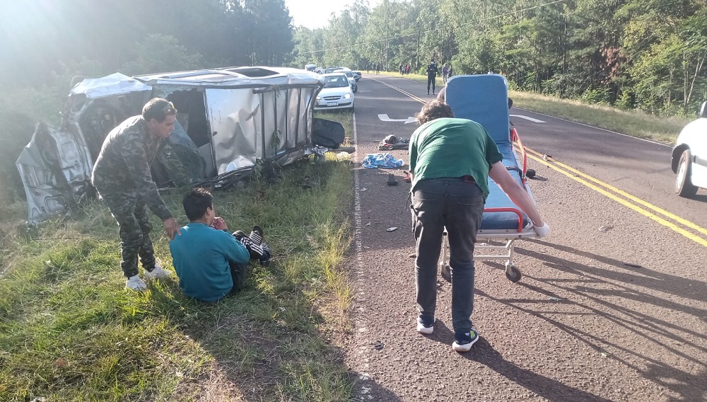 Según informó la Policía, el utilitario circulaba en sentido Cerro Azul-Cerro Corá cuando, sobre el kilómetro 15 de la ruta 3 (llegando a esta última localidad) y por causas que se investigan, despistó y volcó sobre la cinta asfáltica.