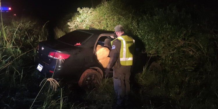 De esta manera, los agentes iniciaron un seguimiento controlado del vehículo, hasta que este último terminó perdiendo la estabilidad y despistando hacia una de las banquinas de la mencionada arteria. Los ocupantes salieron rápidamente del vehículo y lograron escapar del lugar internándose en un monte de la zona.