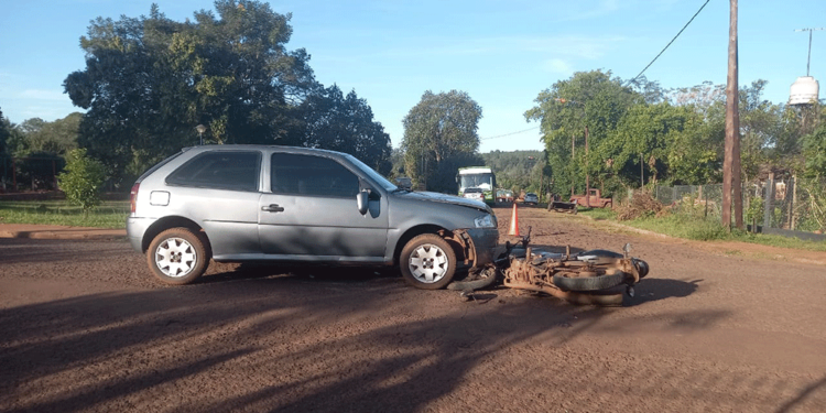 Esta tarde un auto y una motocicleta protagonizaron un choque sobre la calle San Marcos 220 de Montecarlo, más precisamente cerca de la Terminal de Ómnibus.