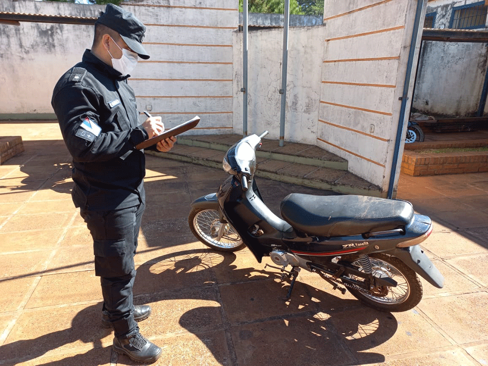 En el barrio Lapachito de Posadas, agentes del Comando San Isidro y de la Comisaría 11ª secuestraron una motocicleta de 110 cilindradas que había sido sustraída días atrás en el barrio Cocomarola Este. Detuvieron a un hombre de 31 años como sospechoso.