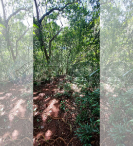 A lo largo del recorrido hay vestigios de lo que en algún momento fueron peldaños de madera, pero son sólo eso, vestigios; así que se debe transitar con extremo cuidado. El camino está repleto de piedras algunas de las cuales apenas se las toca se desprenden y por si esto fuera poco el sendero está repleto de palmeras de las que caen los “coquitos” que si uno no está atento se vuelven una trampa peligrosa ya que pisarlos puede ocasionar resbalones y caídas.
