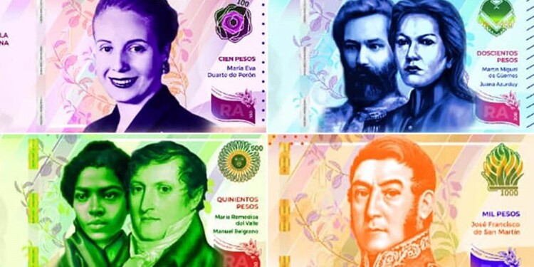 Valen $100, $200, $500 y $1.000, y tienen como figuras a José de San Martín, Eva Perón, Manuel Belgrano con María Remedios del Valle y a Martín Miguel de Güemes con Juana Azurduy.