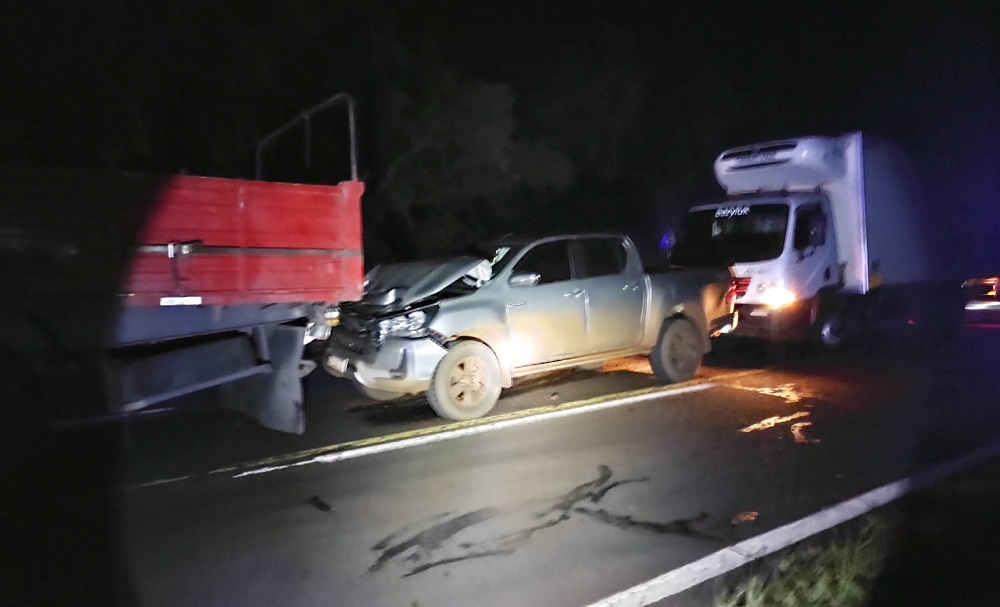 En el lugar y hora mencionados, y por cuestiones que son materia de investigación, una camioneta Ford Ranger al mando de un hombre de 56 años y acompañado por su esposa de 41 fue impactada por detrás por un camión Mercedes Benz, que a su vez fue embestido por una camioneta Toyota Hilux con la cual chocó otro camión Mercedes Accelo.