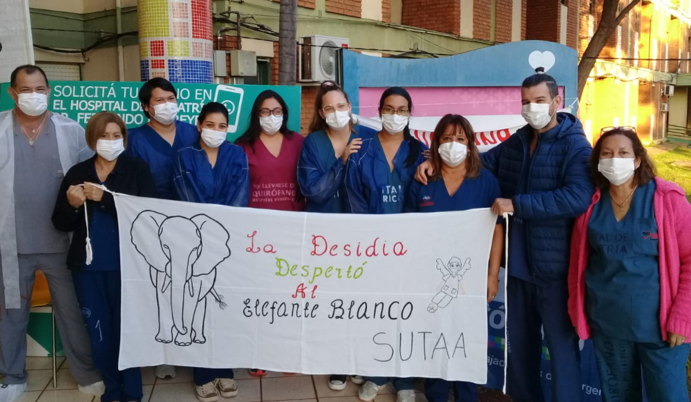 Manifestación de trabajadores de salud pública en el Hospital Madariaga. Por ser insuficientes los acuerdos salariales que no le ganan a la inflación.
