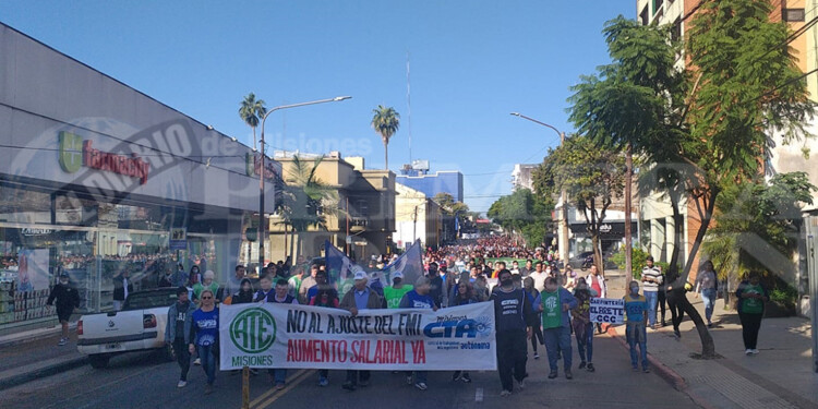 Una nueva jornada de manifestaciones y reclamos copó esta mañana las calles céntricas de Posadas. En el marco del paro nacional convocado por la CTA Autónoma, desde las 8.30 de este martes, cientos de trabajadores pertenecientes a la CTA y ATE, además de organizaciones sociales como la CCC (Corriente Clasista y Combativa) y el Polo Obrero, se concentraron en el mástil de la avenida Mitre y Uruguay.