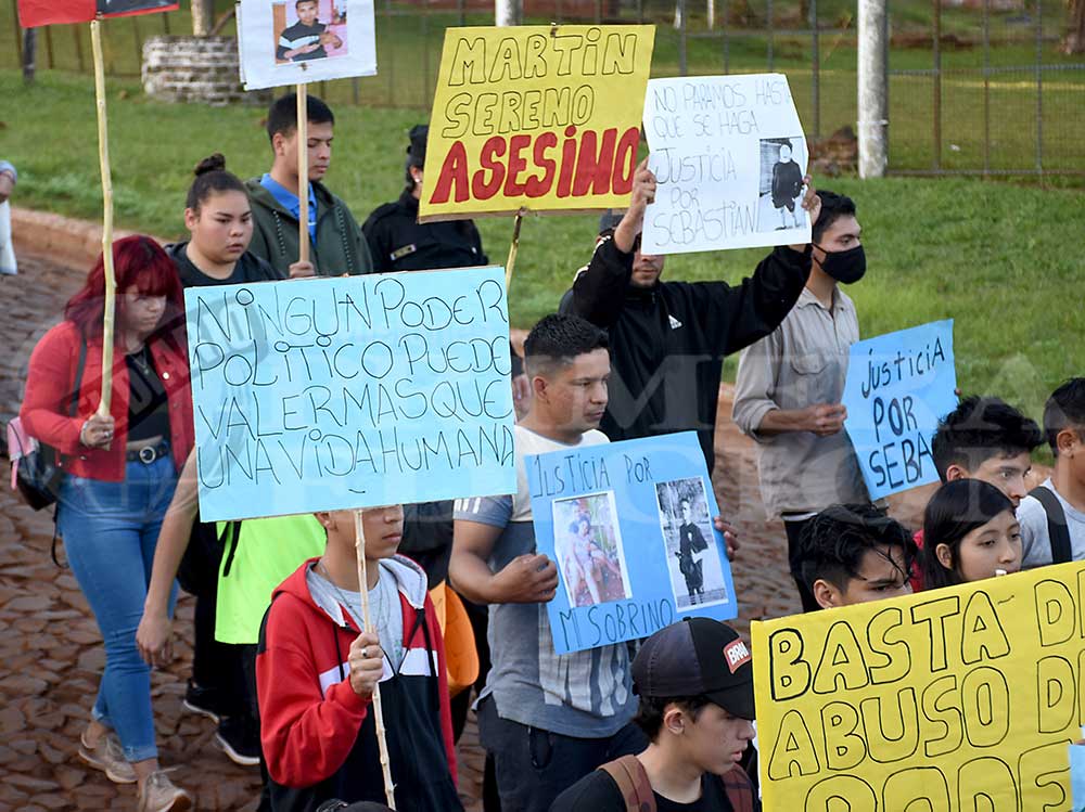 Familiares y amigos de Sebastián Ferreyra (21), mortalmente embestido por una camioneta guiada por el diputado Martín Sereno, marcharon ayer en Jardín América.