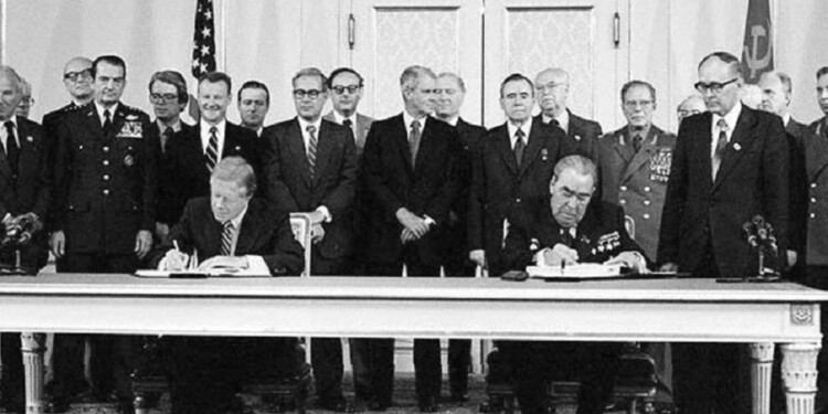 En 1979 Brézhnev y el nuevo presidente Jimmy Carter firmaron en Viena unos nuevos acuerdos, conocidos como SALT II (foto). Este pacto limitaba el número y el tipo de misiles nucleares intercontinentales para las dos potencias.