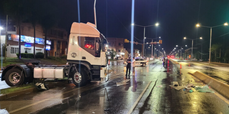En la escena, la policía dialogó con el conductor (38) de un camión Iveco, quien circulaba en sentido Garupá-Posadas por Llamosas. Al llegar a la intersección con la avenida Domingo Perón, se le atravesó una motocicleta. Rápido de reflejos, el camionero realizó una maniobra para evitar la colisión contra el rodado menor, según relató.