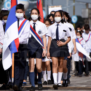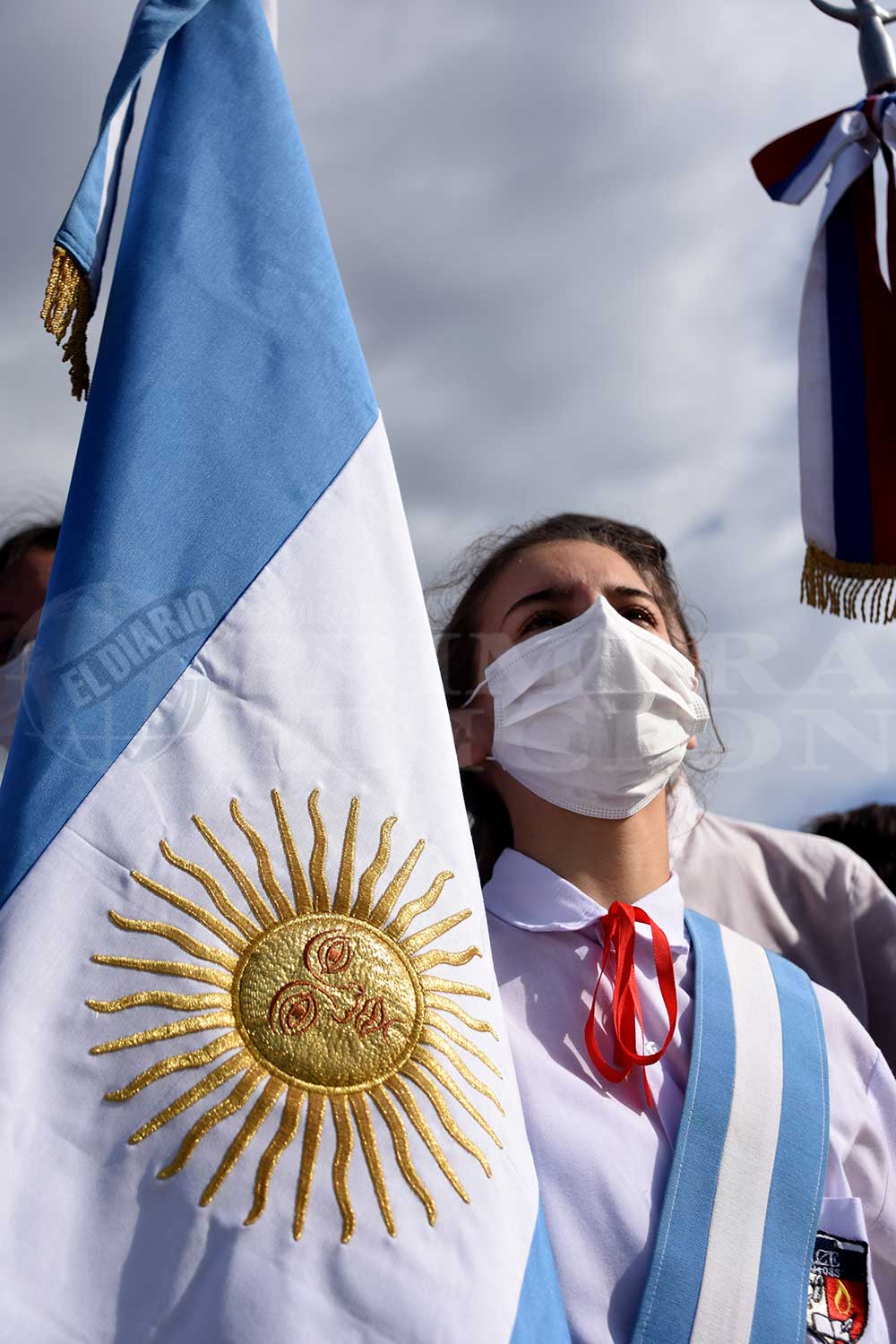 Puntualmente a las 11, dio inicio el festejo con un cielo despejado, a pleno sol, que impulsó a la temperatura hasta cerca de los 29 grados y afectó a más de un abanderado de las escuelas participantes, que debió ser asistido por los docentes que los acompañaban.