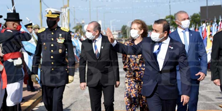Cumpliendo con los protocolos el gobernador Oscar Herrera Ahuad; el vicepresidente de la Cámara de Diputados, Hugo Passalacqua; el vicegobernador, Carlos Arce y el intendente capitalino, Leonardo Stelatto, fueron recibidos por el jefe de Tropa, Segundo Comandante de Brigada de Monte XII, Cristian Fabio Schemi.