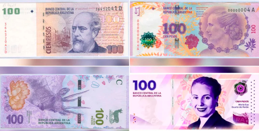 Los argentinos tendrán así en sus billeteras la cuarta versión del billete de 100 pesos. La versión actual, la que tiene la imagen de la taruca, tuvo un alcance limitado, ya que llegó con un sistema colapsado de billete. Las dos versiones anteriores también dieron que hablar: