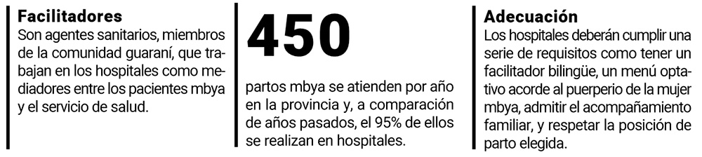 Sin embargo, la semana pasada, se aprobó la ley presentada por el diputado provincial Martín Cesino, por la cual los hospitales deberán (con carácter obligatorio) adecuar sus procedimientos para atender la maternidad y a la familia mbya, bajo una serie de modificaciones que implican capacitaciones, la presencia de facilitadores o guías que acompañen el proceso de parto, una alimentación adecuada a sus parámetros culturales y el acompañamiento familiar entre otras cuestiones.
