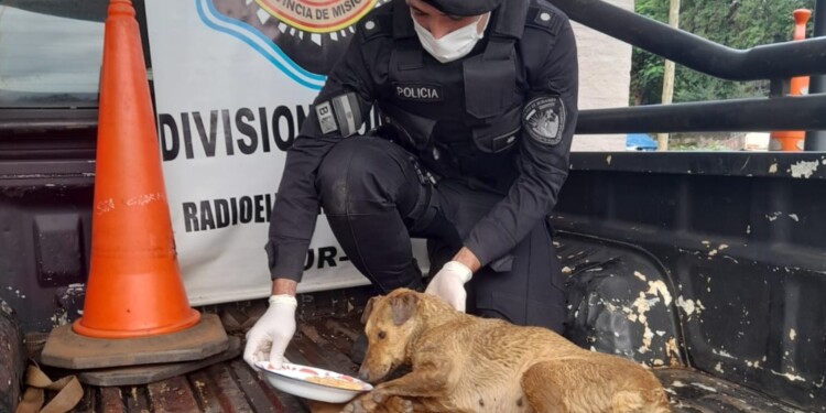 La perra a simple vista presentaba dificultad para respirar, movilizarse y una inflamación en el abdomen. Es por eso que con la colaboración de los vecinos la resguardaron y trasladaron al domicilio particular del veterinario policial en turno para que la examine.