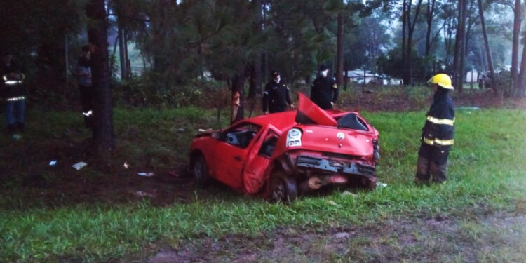Por razones que se investigan, el conductor de un automóvil Volkswagen Gol perdió el control del rodado, despistó sobre la banquina y terminó impactando contra un árbol de pino.